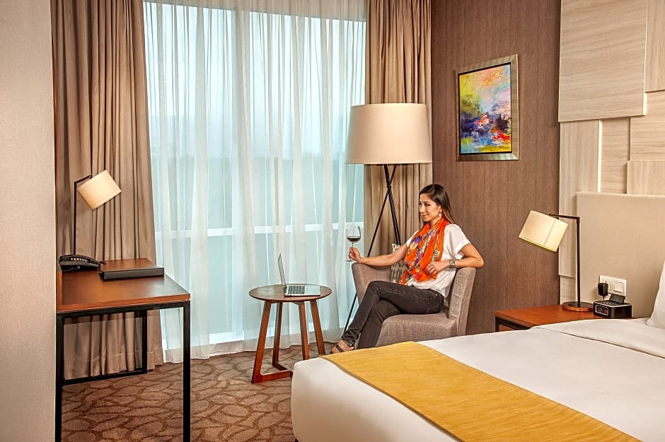 This twin room's standout feature is the pool with a view. Offering free toiletries and bathrobes, this twin room includes a private bathroom with a bath, a shower and a bidet. The spacious air-conditioned twin room offers a flat-screen TV with cable channels, a mini-bar, a tea and coffee maker, executive lounge access as well as city views. The unit has 2 beds.